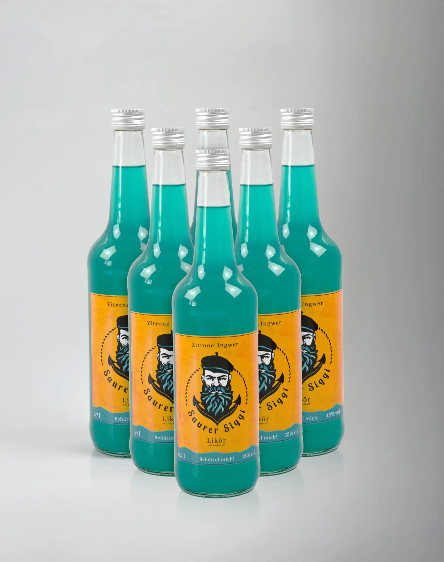 Zitronen-Ingwer-Likör mit 15% Umdrehung.